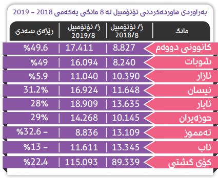 بەهۆی یەكخستنی پێناسی گومرگی كە لە مانگی شوبات جێبەجێكرا و بریاری راگرتنی هاوردەی ئۆتۆمبێلی لێدراو و ژێرئاوكەوتوو لەلایەن وەزارەتی ناوخۆ كە لە مانگی تەممووز خرایە بواری جێبەجێكردن، پێشبینی دەكرا هاوردەی ئۆتۆمبێل ئەمساڵ پاشەكشێ بكات ، بەڵام بەپێی ئامارەكە لە هەشت مانگی یەكەمی ئەمساڵدا بەراورد بە هەشت مانگی یەكەمی ساڵی رابردوو هاوردەكردنی ئۆتۆمبێل بە رێژەی 22.4% زیادی كردووە.